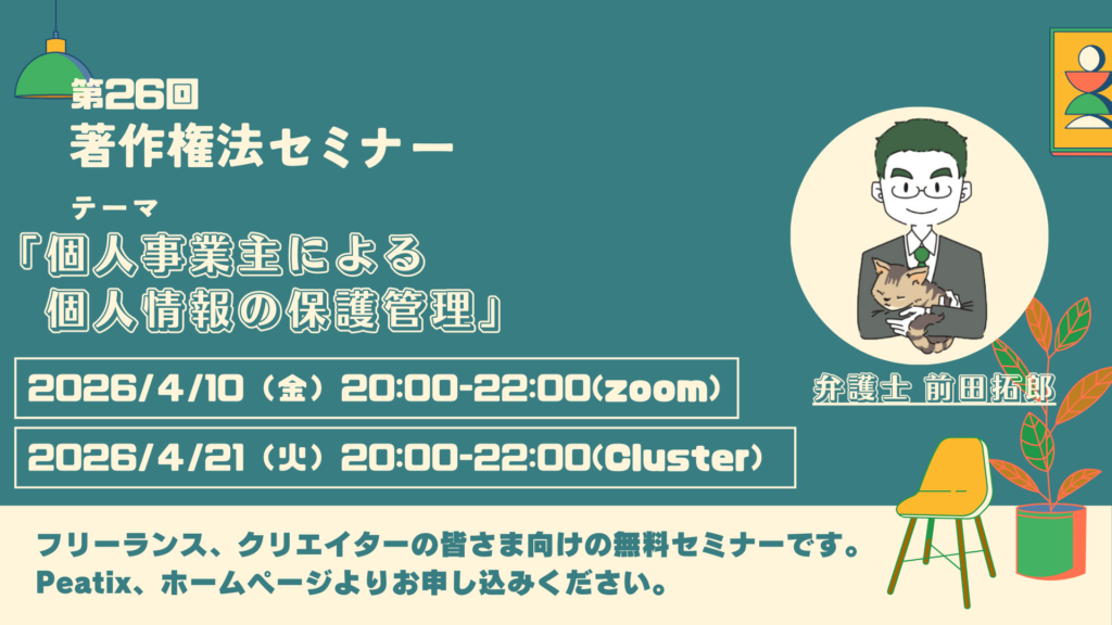 第23回著作権法セミナー「クリエイター・フリーランスが知るべき個人情報保護の基礎」